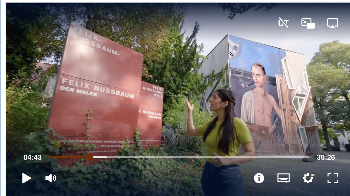 „Die Sendung mit der Maus“ hat das Felix-Nussbaum-Haus besucht! Moderatorin Clarissa zeigt nicht nur Nussbaums Weg von Osnabrück ins Exil, sondern lässt auch ein bisher unveröffentlichtes Trickfilm-Drehbuch des Malers erstmals als Animation lebendig werden. Ein berührender Blick auf unsere Stadtgeschichte, kindgerecht und absolut sehenswert.
